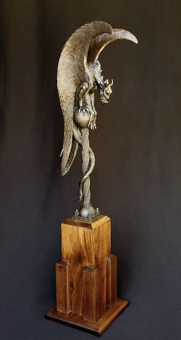 A bronze sculpture of an aspect of Artemis, the goddess of the moon and the hunt, by Deran Wright